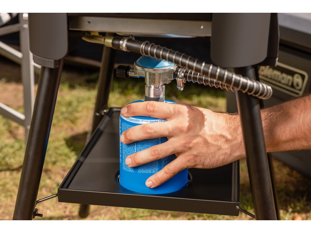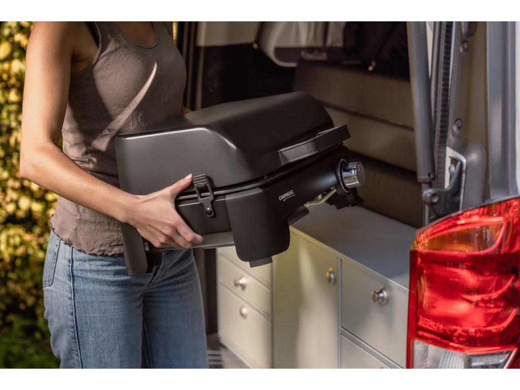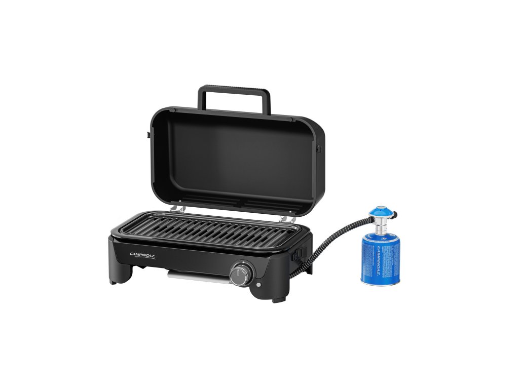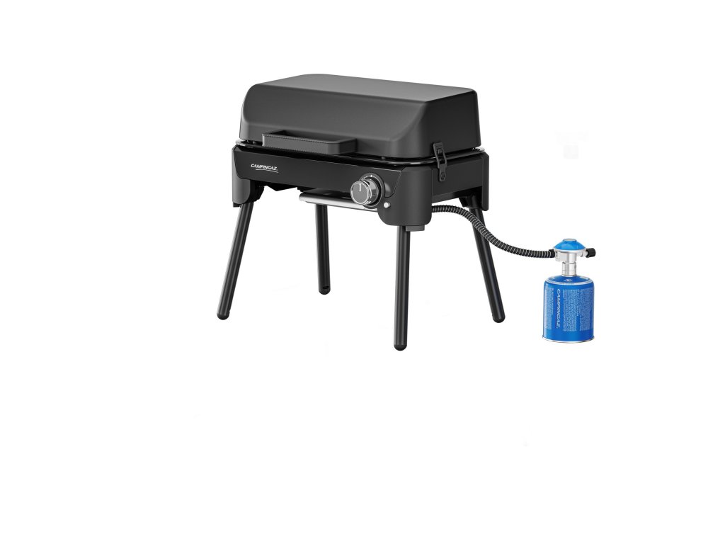 Nový lehký plynový gril na kartuši vhodný pro cestování, malé zahrádky i balkony. Čtyři ocelové nohy, které se dají demontovat a rozložit pro snadné skladování. Tělo grilu lze od nich jednoduše odpojit a gril tak použít jako stolní gril. Hořák ve tvaru U efektivně rozptýlí teplotu po celé ploše a uspoří váš plyn. Ochrana hořáku je zabudovaná přímo v roštu grilu. Vysouvací miska na nečistoty pro snadné čistění. Piezo zapalování. Držák plynové kartuše zabudovaný v poličce. 3 možnosti nastavení výšky grilu (bez nožiček samostatně, v poloviční výšce nebo s celými nohami a poličkou). Ocelová polička umístěna mezi nohami grilu. Klipy pro zajištění víka. Připojovací sada je součástí grilu.