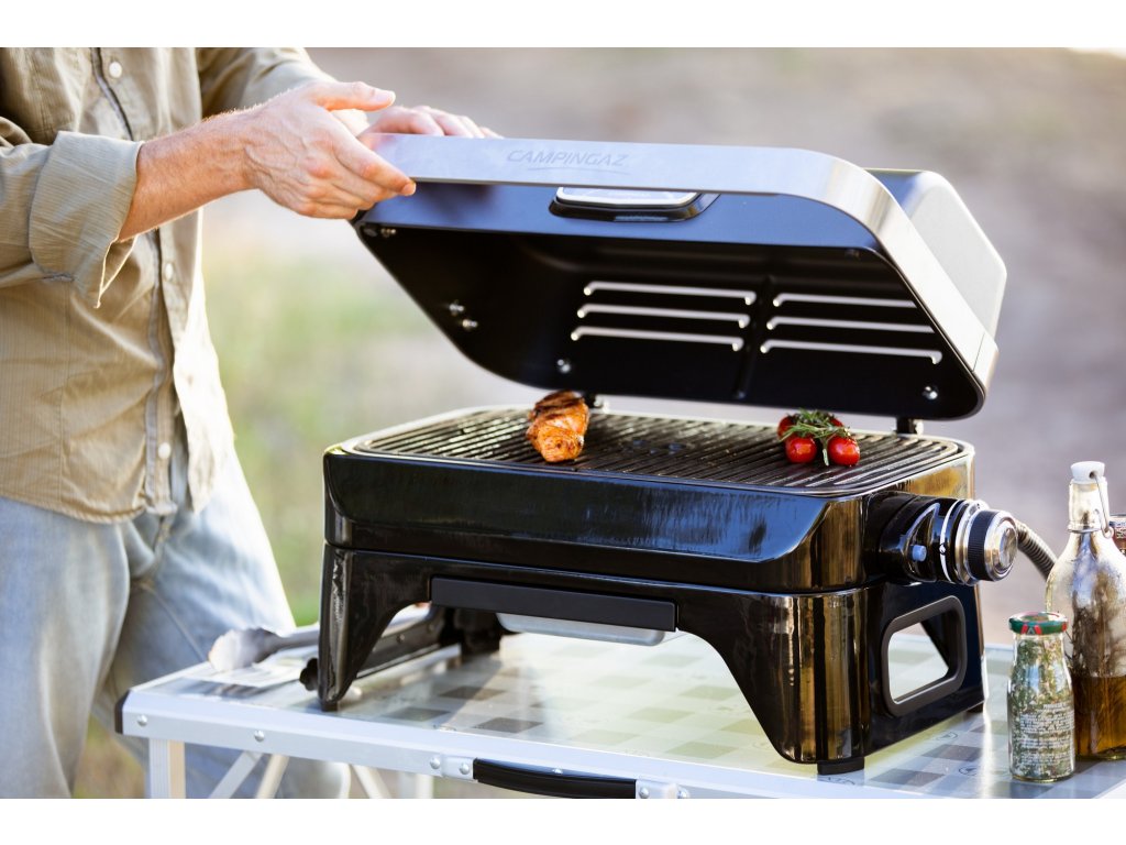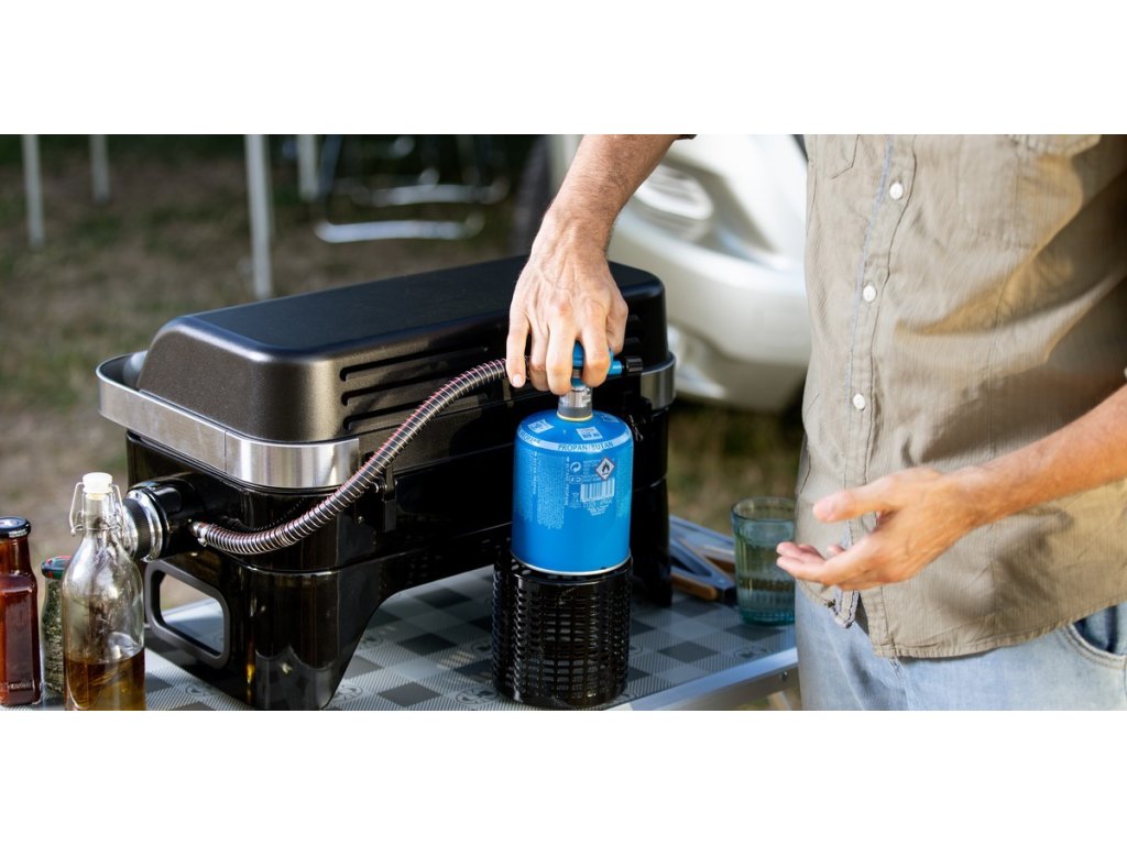 Nový stolní plynový gril, který potěší každého, kdo nemá zahradu nebo velké prostory pro grilování. Tato verze na plynovou kartuši má připojovací sadu součástí balení. Hořák Blue Flame z aluminizované oceli zajistí úsporu plynu a vynikající výkon s rovnoměrnou distribucí tepla po celé grilovací ploše. Nečistoty a šťávy z grilování lze pohodlně zachytit do odpadního šuplíčku, který se vysouvá zepředu grilu a výborně se čistí. Čistění rychle a jednoduše! Piezo zapalování.