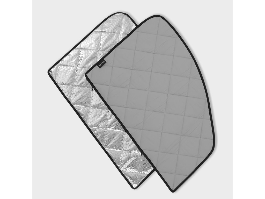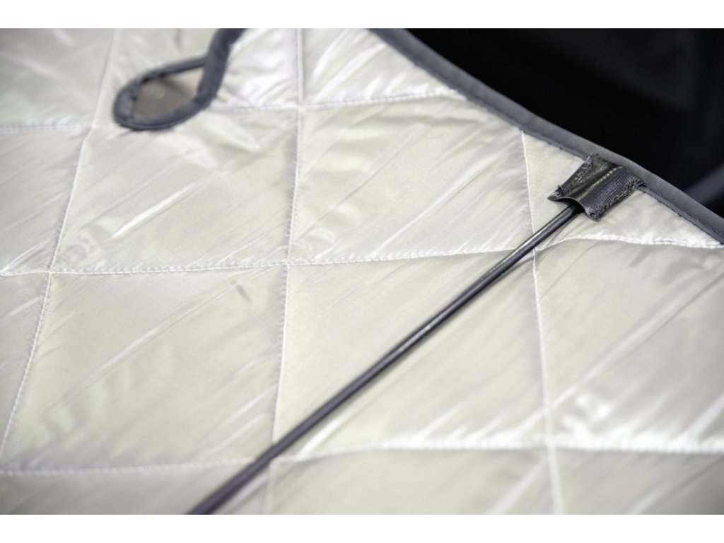 Třídílná sada izolačních rohoží chrání před intenzivním slunečním zářením a zajišťuje tak příjemné teploty uvnitř vozidla. Uchycení je snadnější než kdy jindy, díky všitým magnetům na obou bočních dílech a napínacím tyčím v přední části.
