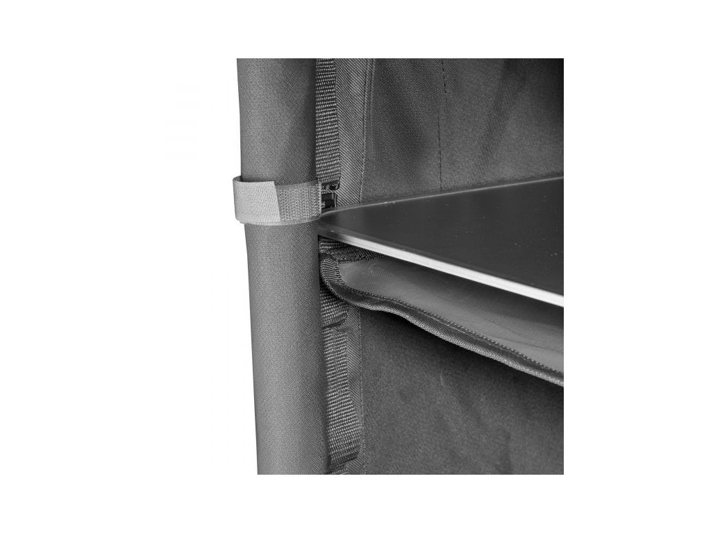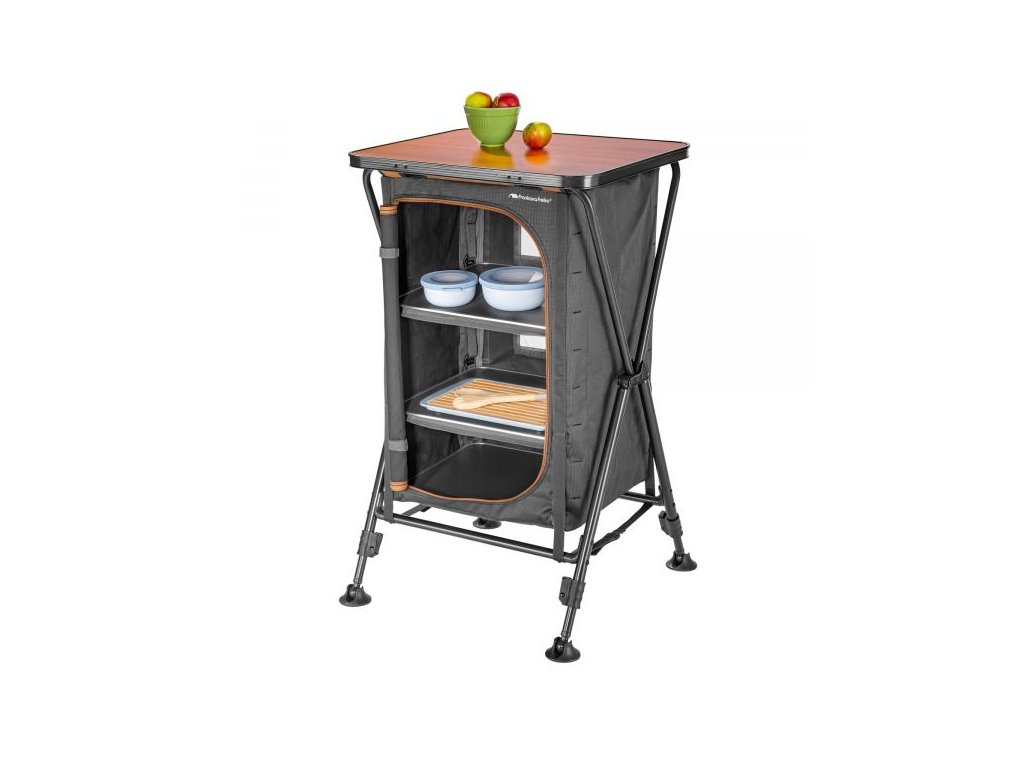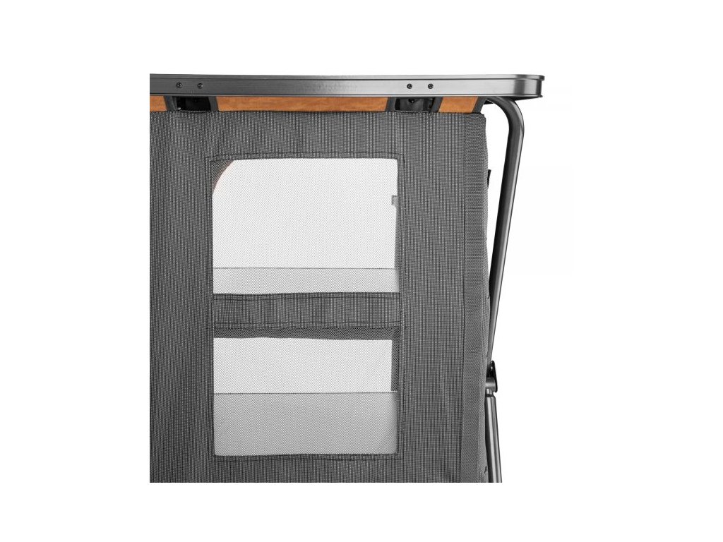 Skříně druhé generace se stejně jako jejich předchůdci vyznačují promyšleným celkovým designem, atraktivním vzhledem a atraktivní cenou. Skládají se ze stabilního lehkého hliníkového rámu a robustního krytu z 600D ripstop materiálu. Police s elegantním vzhledem dřeva jsou zcela nové. Oba modely mají integrovanou ventilaci na zádech, výškově nastavitelné nohy vybavené velkými stojnými deskami a praktickými bočními kapsami a unesou zatížení až 30 kg. Lze je rychle a snadno složit a snadno a bezpečně uložit do přiloženého úložného a přepravního vaku. S pevnou deskou a 3 policemi, rozměry š 60 x v 96 x h 51,5 cm, hmotnost 6,7 kg.