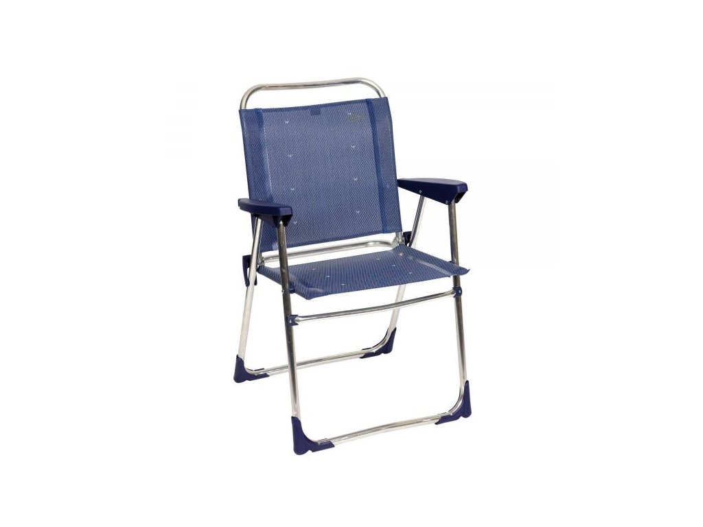 Lehké rozkládací křeslo s nízkým pevným opěradlem.