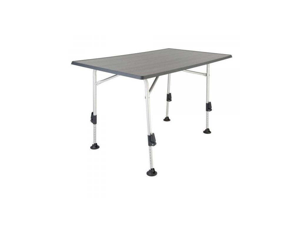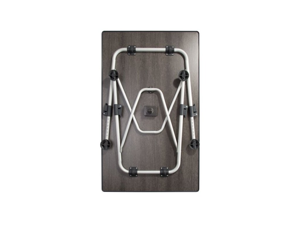 Stůl zaujme svým hliníkovým rámem, protože je lehký a vysoce stabilní. Velké patky s kuličkovými ložisky umožňují velmi dobrou stabilitu i na nerovném terénu. Všechny čtyři nohy stolu jsou výškově nastavitelné. Deska stolu je odolná vůči povětrnostním vlivům a teplu.