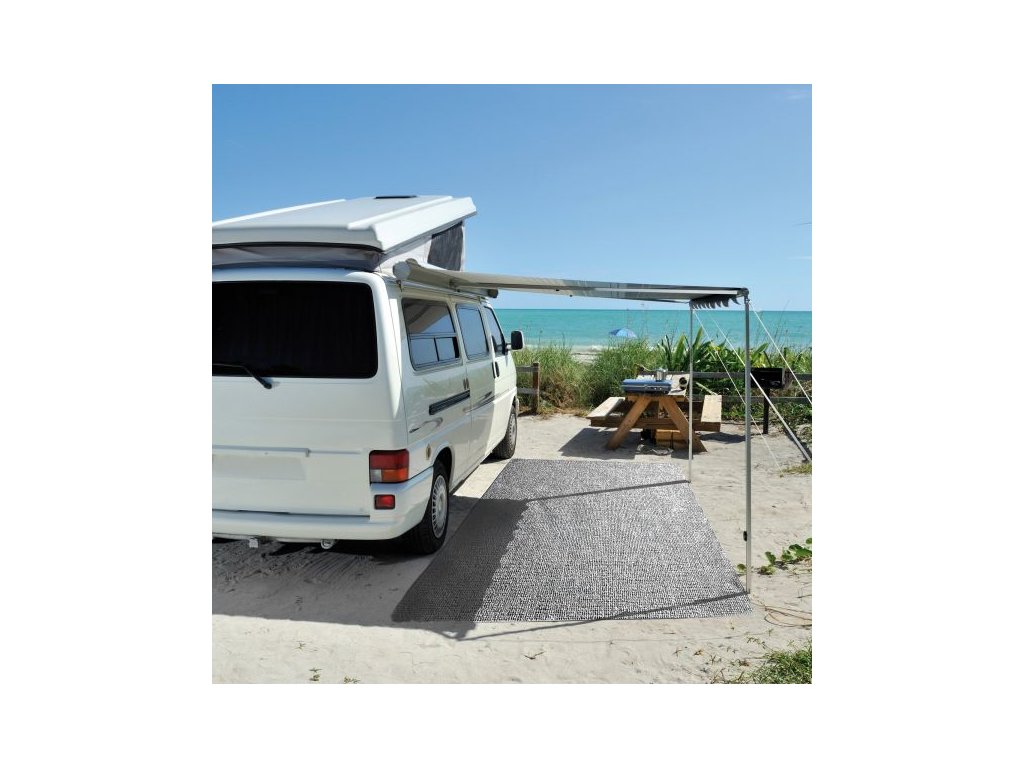 Markýzový koberec je ideální volbou pro váš venkovní prostor. S tloušťkou cca 3 mm a povrchem potaženým PVC pěnou je příjemně měkký a nečistoty snadno propadávají. Díky odolnosti proti UV záření, oděru a povětrnostním vlivům vydrží dlouhodobě jako nový, ať už ho používáte na terase, v zahradě nebo pod markýzou. Podšívka z 100% juty (jutová tkanina potažená PVC pěnou) neobsahuje ftaláty, zajišťuje vynikající tepelnou izolaci a nabízí vysoký komfort chůze. Součástí balení je přenosná taška, která usnadňuje manipulaci a skladování. Údržba je snadná i při silném znečištění, takže váš koberec bude vždy vypadat skvěle.