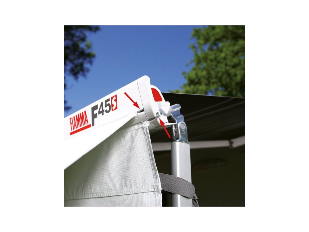Technické vlastnosti: nastavovací systém Presto Fix®; silná a prostorově nenáročná kloubová ramena s dvojitým napnutím lana. dvojité tlumiče; automatický zámek; duální zabezpečení; klika skládací markýzy; Krátký pro F45 S 260 cm; Standardní držáky AS (součástí balení); kolíky pro upevnění do země; Včetně 1 táhla krokve z eloxovaného hliníku od délky 400 cm.