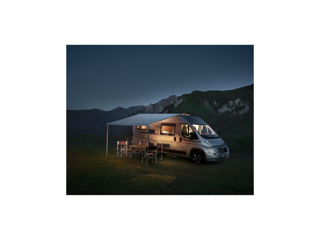 Speciálně pro Fiat Ducato modelového roku 2006/07 a novější se střechou H2 byl vytvořen balíček. Skládá se ze střešní markýzy 6300 v odstínu Mystic Gray, speciální sady adaptérů a těsnicího pásku z pěny EPDM (2 x 2 m). Markýzy jsou k dispozici v délkách 3,25, 3,75 a 4 m s přesahem 2,5 m. kompaktní kloubová markýza pro montáž na střechu Pouzdro k dispozici v bílé, eloxované nebo antracitové barvě Koncové krytky v barvě pouzdra nebo volitelně v antracitové barvě pro eloxované pouzdro Prodloužení 2,5 m individuálně nastavitelný úhel vysunutí Optimální stabilita a napětí látky díky integrovaným napínacím ramenům (od délky markýzy 3,75 m) Snížené mačkání díky patentované podpěře role s látkou robustní kloubová ramena s dvojitými ocelovými lany Podpěrné nožičky se systémem „Quick-Lock“ s úchytem pro volitelnou 3. podpěrnou nohu (od délky markýzy 3,75 m, č. výrobku 89 787, viz strana katalogu 165) Přední profil s odvodňovacím systémem pro dešťovou vodu Motor lze snadno dodatečně vybavit (viz strana katalogu 142)Doplňkové parametry
