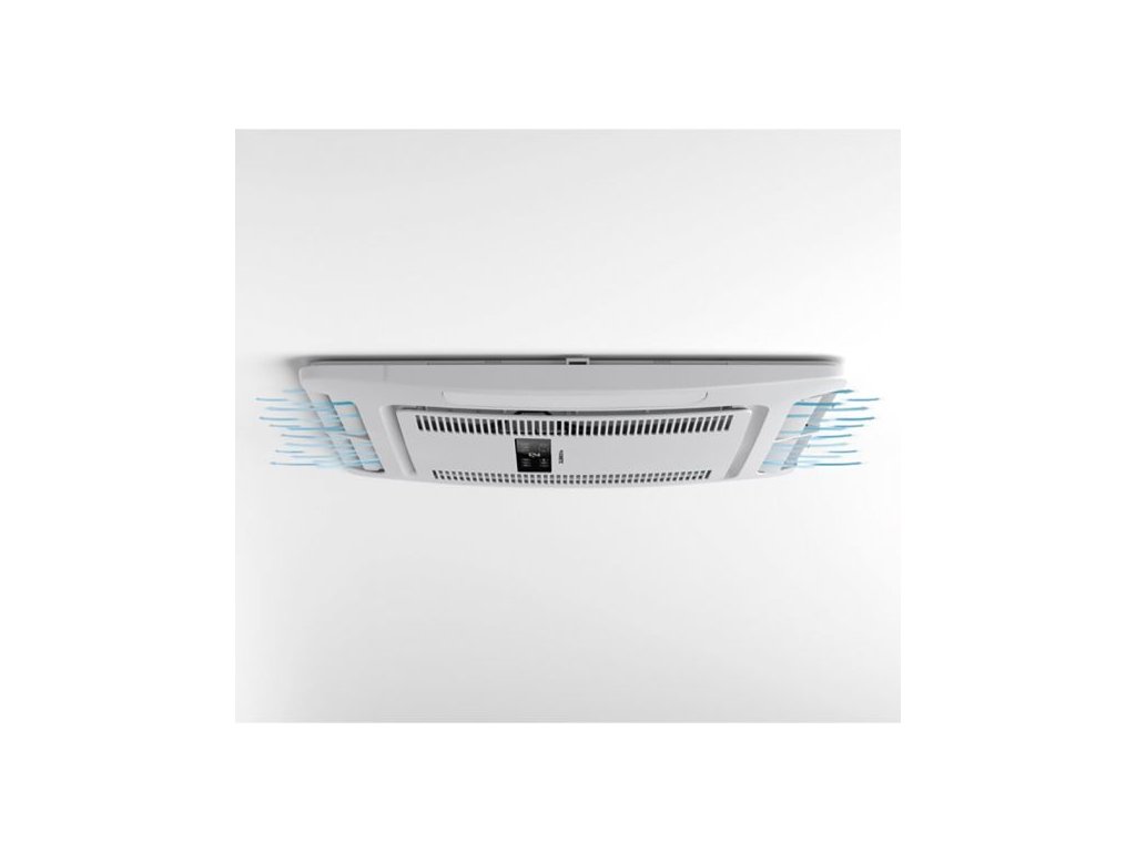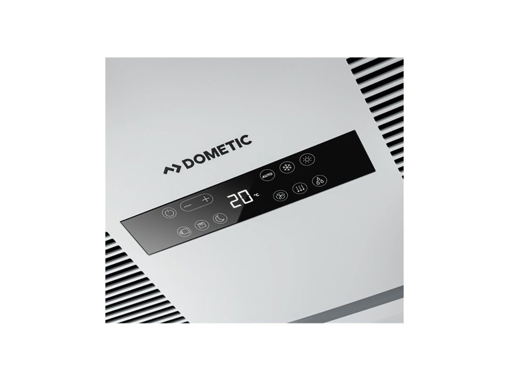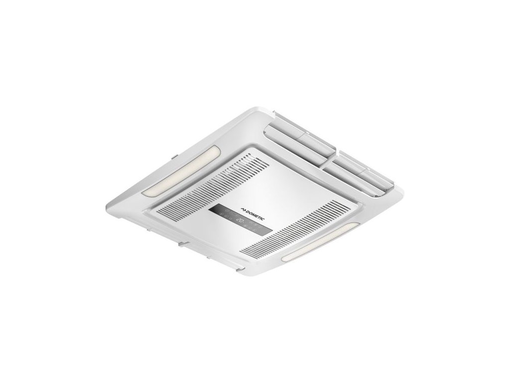 Spodní kryt klimatizace Dometic s LED osvětlením má elektronický dotykový ovládací panel pro pohodlné nastavení teploty a průtoku vzduchu. Kompatibilní s aplikací Dometic pro chytré telefony.