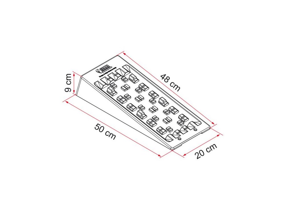 Zvedněte svůj obytný vůz nebo karavan bez námahy s kompletním systémem Fiamma Level! Spolehlivě zabraňuje nevýhodám naklánění. Protiskluzový povrch přilne k pneumatikám. Lehký, nekorodující, rychle se čistí a netřepí se. Odolný vůči UV záření. Stohovací systém se samosvornými západkami pro nastavení výšky. Ideální pro obytné vozy. Maximální nosnost na nápravu až 8 t. Příslušenství (není součástí dodávky): tlumič a vak na tlumiče S.Doplňkové parametry